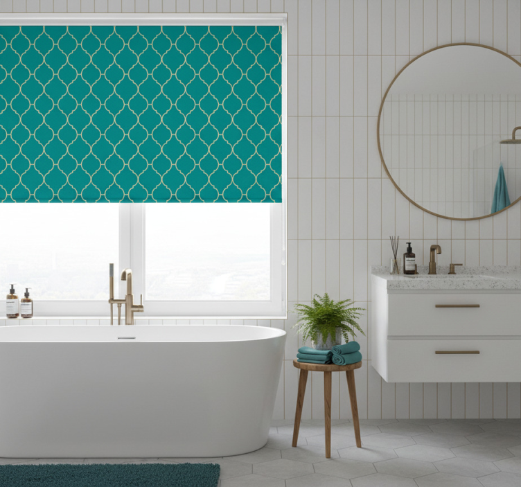 Reference: E9050Introducing our stunning blue blind with gold and turquoise design, a perfect blend of elegance and modernity! This captivating roller blind features an intricate pattern that combines rich gold accents with vibrant turquoise, creating a striking visual appeal that enhances any room's aesthetic. With its easy assembly in just two clicks and effortless cleaning, this blind is designed for both beauty and practicality. It effectively protects your space from direct sunlight while providing privacy and allowing you to regulate the room temperature, making it a versatile addition to your home!