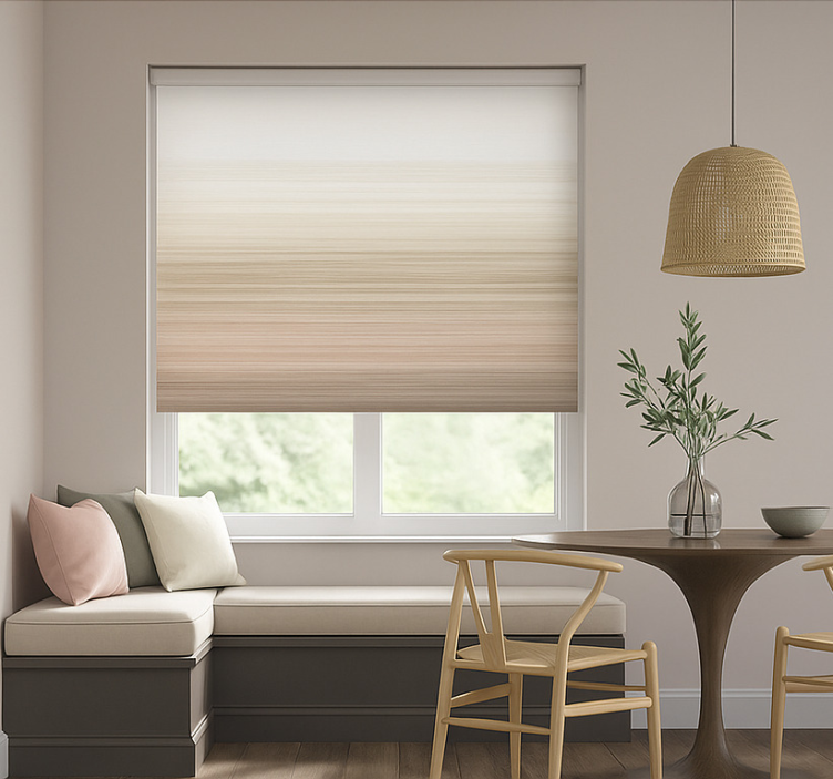 Reference: E5889Transform your dining area with our Earthy natural tones dining room blind, featuring a beautiful design that seamlessly blends into any decor. The combination of rich, earthy hues, easy assembly, and customizable textures makes this blind a perfect choice for enhancing your home. It not only adds a touch of elegance but also protects your space from direct sunlight, ensuring comfort and privacy when desired.