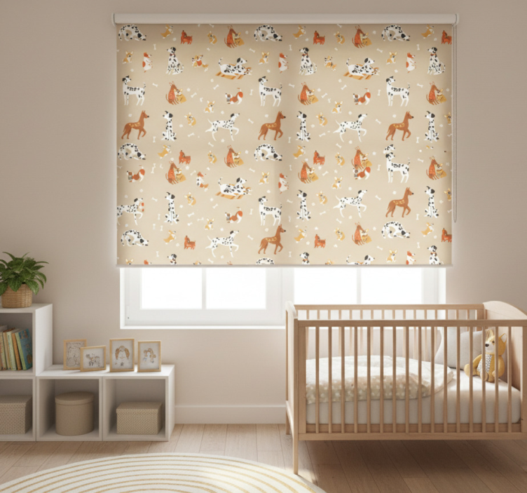 Childrens blind featuring adorable dogs on beige