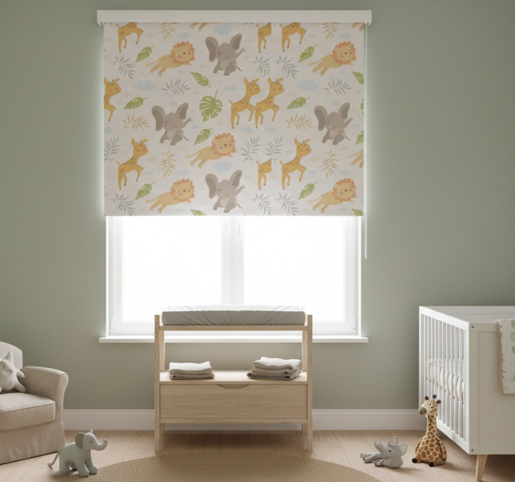 Reference: E7006Introducing our Childrens blind in nordic minimalist safari style, a stunning blend of modern design and playful charm! This roller blind features a unique safari-inspired pattern, complemented by a soothing color palette and easy assembly that can be done in just two clicks. Crafted for both style and functionality, it is easy to clean and provides the perfect solution for light control and privacy.