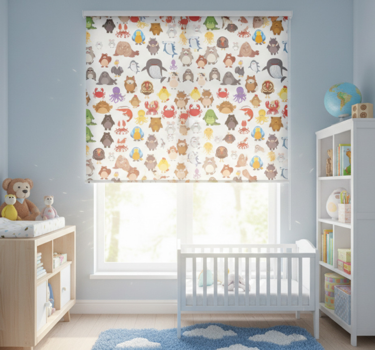 Reference: E6909Introducing our Childrens blind wild animals in colors, a delightful addition to any child's room! This roller blind features a vibrant design showcasing a variety of wild animals in an array of colors, creating a joyful atmosphere. The playful imagery is sure to capture your child's imagination while providing essential functionality. With easy assembly in just 2 clicks, effortless cleaning, and seamless disassembly, this roller blind is perfect for busy parents. It effectively protects the room from direct sunlight, enhances privacy when lowered, and helps regulate room temperature for comfort. Plus, it adds a charming decorative touch!