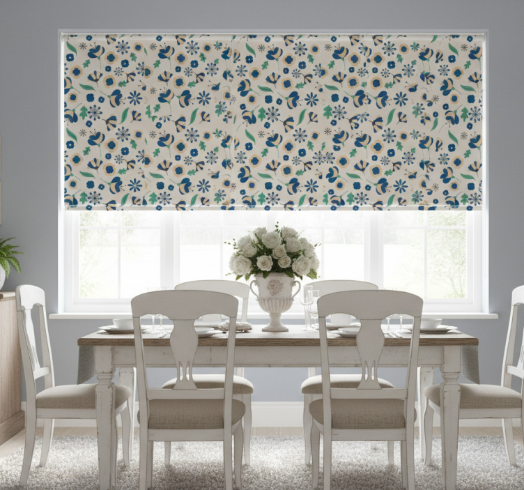 The Dining room blind in french provincial floral white dining room blind is the perfect addition to any home looking to elevate its decor. Imagine the charm it brings to your dining area, creating a warm and inviting environment for family and friends. This roller blind adds a touch of sophistication and elegance, making it ideal for both casual meals and formal gatherings. With its beautiful floral design, this blind becomes a focal point in your room, seamlessly blending comfort with style!