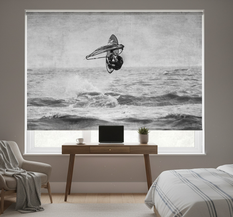 The Grey blind black and white windsurf grey blind is an exceptional choice for enhancing your interior decor! Its modern design effortlessly adds a touch of sophistication while providing a unique artistic flair. By choosing this roller blind, you not only elevate your room's aesthetic but also create a cozy environment that inspires relaxation and creativity. Let your windows tell a story with this beautiful piece!