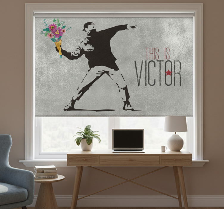 Reference: E8787Introducing the stunning Grey blind personalized banksy flower bouquet, a perfect fusion of artistic expression and practicality. This unique roller blind features a beautiful Banksy-inspired flower bouquet design, bringing a touch of urban elegance into your space. Crafted with care, it offers easy assembly in just two clicks, making it a breeze to enhance your home decor. The blind is easy to clean and can be disassembled just as effortlessly, allowing for quick maintenance of your windows and surroundings. Not only does it protect your room from direct sunlight, but it also provides privacy when lowered, effectively regulating the room temperature while ensuring your security. With 100% customizable measurements and three different textures to choose from, this blind is designed to meet your specific light and privacy needs!