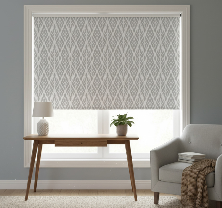 Grey blind with ethnic floral grey pattern