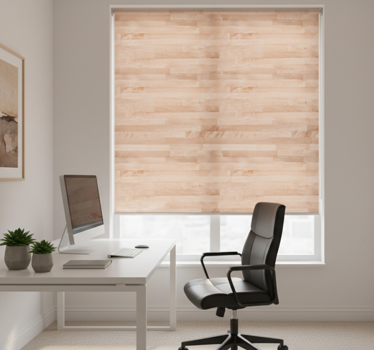 Reference: E6206Transform your workspace with the Home office blind elegant brown wooden plank, a stunning piece designed to enhance any home office. This roller blind features a rich brown wooden plank design that exudes sophistication and warmth, seamlessly blending with various décor styles. Its easy assembly and disassembly in just two clicks make it a practical choice, while its easy-to-clean fabric ensures a hassle-free experience. Enjoy the perfect balance of natural light and privacy with this stylish addition to your office space!