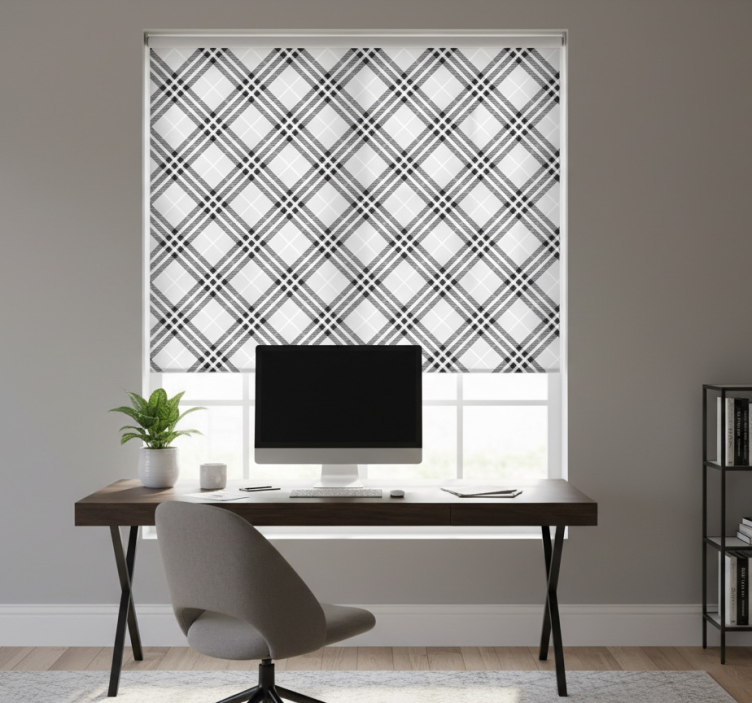 Transform your workspace with the Home office blind in black and white scottish tartan home office blind. This beautiful roller blind not only enhances the aesthetic appeal of your home office but also creates a calming atmosphere that boosts productivity. The timeless tartan design adds character and charm, making it an ideal choice for those who appreciate classic styles. Let your home office reflect your unique taste while providing comfort and functionality!