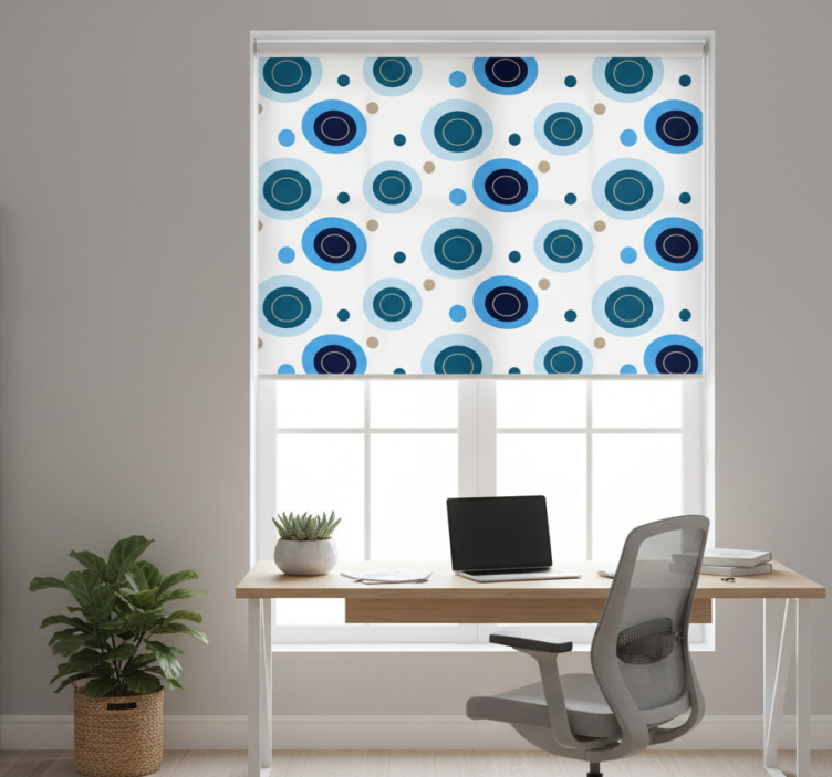 The Home office blind in blue floral dot pattern home office blind is the perfect decorative accent for your workspace! Its whimsical floral dot design brings a touch of elegance and cheerfulness, inspiring creativity and productivity. By incorporating this stunning blind into your decor, you can effortlessly elevate the atmosphere of your home office, making it a place where ideas flourish and work feels enjoyable!