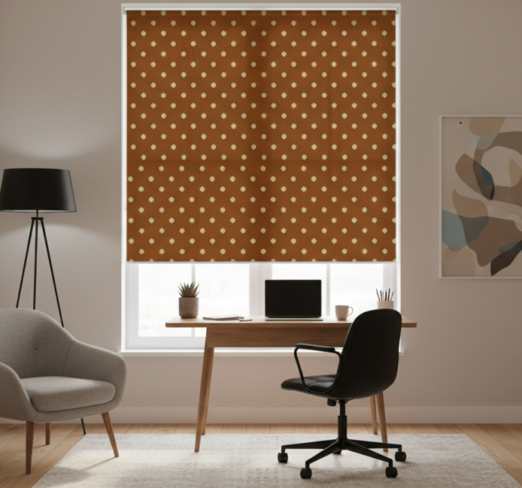 Reference: E6186Transform your workspace with our Home office blind in brown cross pattern, an exquisite blend of style and functionality designed to elevate any home office. The captivating brown cross pattern adds a touch of elegance, while the customizable options ensure it fits perfectly in any setting. This roller blind is not just a visual delight; it also offers easy assembly in 2 clicks, effortless cleaning, and the convenience of disassembly, allowing you to maintain a pristine window area with ease. Protect your space from direct sunlight while enjoying the privacy it provides when lowered, making it a perfect addition to your home office.
