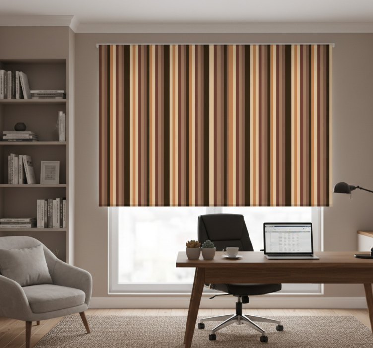 Home office blind in brown vertical stripes