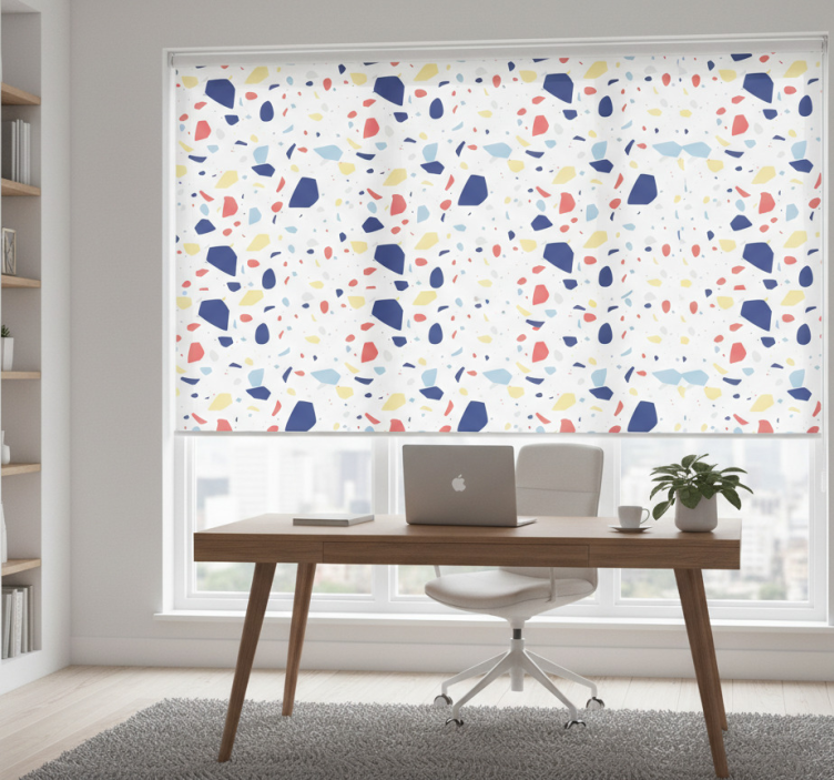 Reference: E6214Transform your workspace with our Home office blind in elegant terrazzo. This stunning design features a unique terrazzo pattern, blending vibrant colors and textures to create a visually captivating focal point for your home office. The blind is not only a beautiful addition but also offers practical benefits, including easy assembly and disassembly in just two clicks, effortless cleaning, and the ability to control light and privacy.