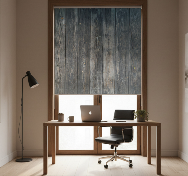 Reference: E6201Transform your workspace with our Home office blind in gray broken rustic pattern. This stunning design features a sophisticated blend of rustic charm and contemporary elegance, making it an ideal choice for any home office. The intricate broken pattern adds visual interest while the gray color provides a soothing backdrop that complements a variety of decor styles. Enjoy the perfect combination of functionality and style in your workspace!