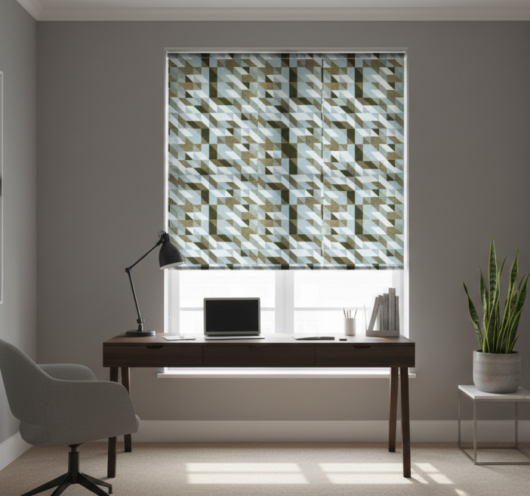 A Home office blind in modern triangles design home office blind is not just a practical addition to your workspace, but also a stunning decorative element! Its unique triangle patterns add a modern touch that can elevate your home office decor, creating an inspiring and motivating environment. By incorporating this blind, you can harmonize your workspace with the overall interior design, ensuring that every detail contributes to a cohesive and stylish aesthetic. Enjoy the perfect blend of form and function!