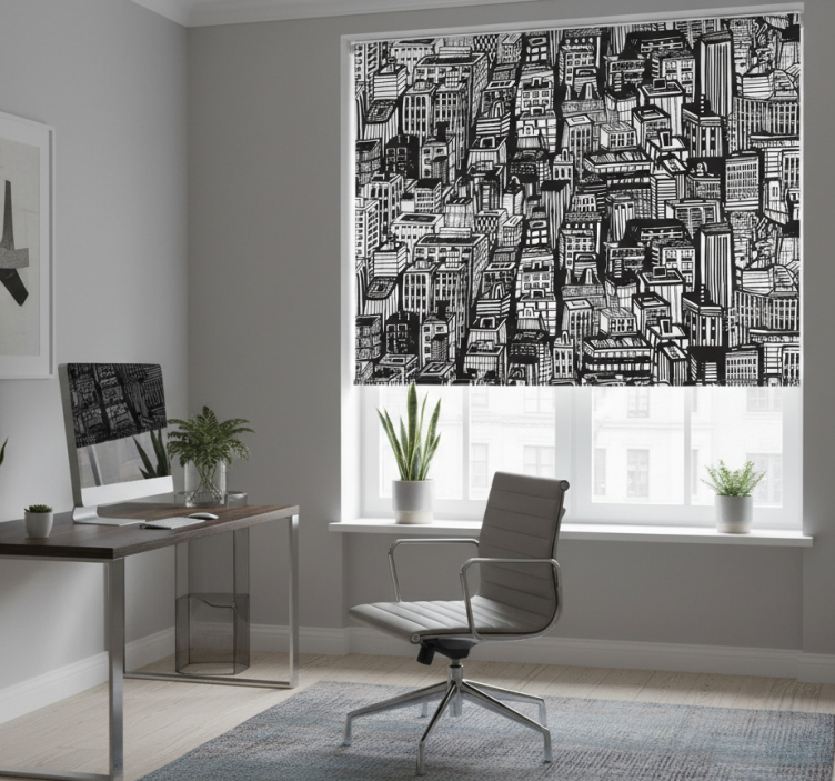 Reference: E6235Introducing our stunning Home office blind inspired by new york skyscrapers, a perfect blend of style and functionality! This unique roller blind showcases a modern design that captures the essence of urban elegance, featuring sleek lines and a sophisticated texture. Its versatile nature allows it to seamlessly fit into any home office, providing both aesthetic appeal and practical benefits. The blind is easy to clean and offers an effortless assembly and disassembly in just two clicks, making it a convenient choice for any workspace.