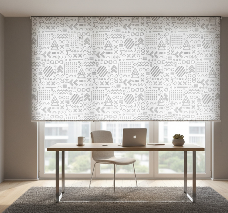 The Home office blind with geometric sketches pattern home office blind is more than just a window covering; it's a statement piece that elevates your decor. The unique geometric designs engage the eye, making your home office an inviting and stylish environment. By incorporating this roller blind, you create a harmonious blend of functionality and artistic flair, inspiring you to achieve your best work every day!
