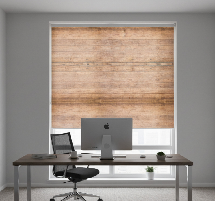 Installing the Home office blind with horizontal rustic wood planks home office blind is incredibly simple and user-friendly. With an innovative design, you can achieve a secure fit in just a few clicks, ensuring a hassle-free experience. Enjoy the benefits of an easy-to-clean product that enhances your home office!