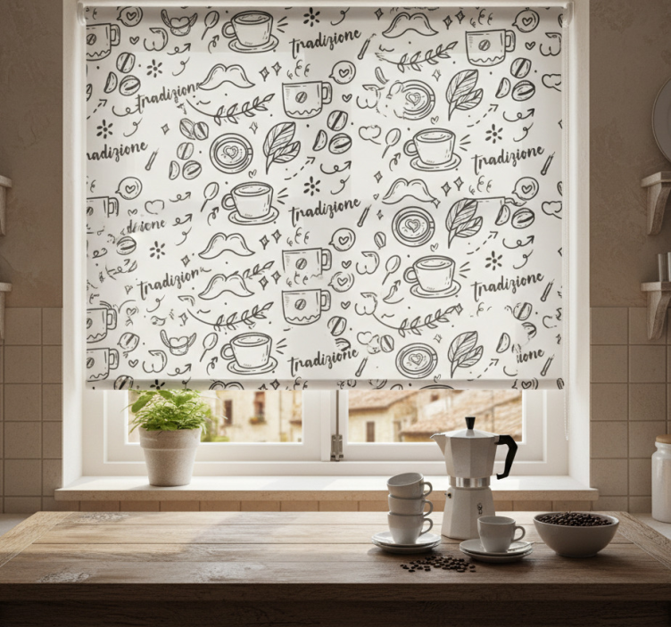Installing the Kitchen blind italian tradition with coffee kitchen blind is a breeze! With our innovative design, you can achieve perfect placement in just two simple clicks. Enjoy the ease of setting it up and transforming your kitchen in no time!