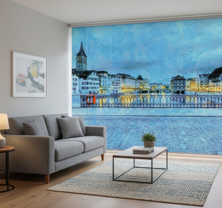 Reference: E9505Transform your living space with the stunning Living room blind cold night on a bridge in zürich. This unique roller blind features a captivating design that beautifully captures the serene ambiance of a cold night in Zürich, showcasing intricate details that blend seamlessly with any decor. Its easy assembly in just two clicks ensures that you can effortlessly enhance your living room while enjoying the benefits of privacy and light control. With easy disassembly, you can keep your windows spotless in no time, making it a practical choice that doesn’t compromise on style!