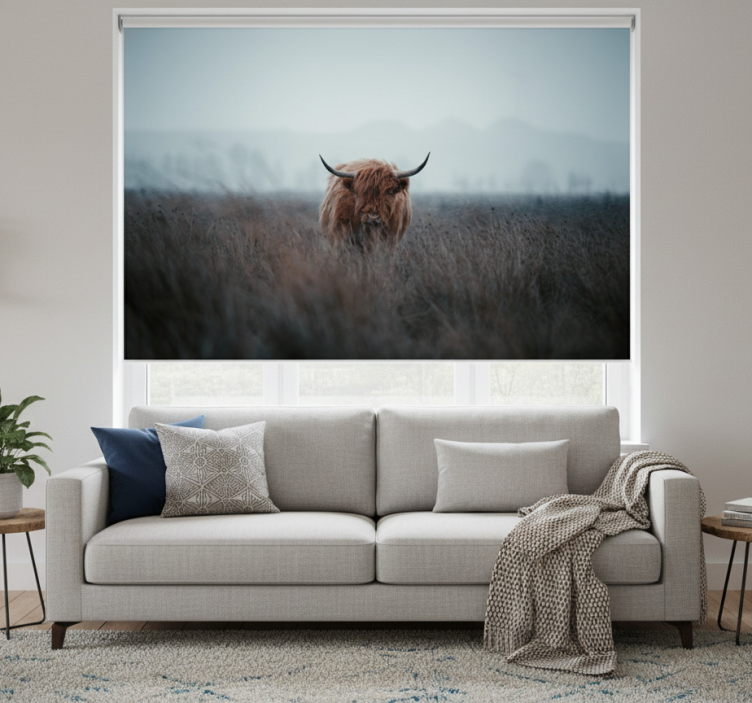 Reference: E8954Introducing our stunning Living room blind highland cow design, a unique addition to your home decor! This roller blind features an adorable highland cow graphic, bringing warmth and charm to any space. Crafted with easy assembly in just two clicks, this design not only enhances your living room's aesthetic but also offers practicality. The blind is easy to clean and disassemble, allowing you to maintain a tidy environment effortlessly. Protect your home from direct sunlight while enjoying privacy and regulating room temperature effectively!