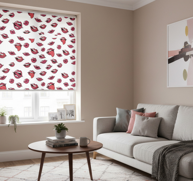 Reference: E7661Introducing our stunning Modern blind abstract lips and tongue design, a captivating visual masterpiece that effortlessly combines artistry and functionality. This unique roller blind features an eye-catching abstract design portraying lips and a tongue, creating an intriguing focal point in any room. With its easy assembly in just 2 clicks, effortless cleaning, and the ability to disassemble just as quickly, this product is not only visually appealing but also user-friendly. The Modern blind abstract lips and tongue design protects your space from direct sunlight while providing the privacy you desire, all while allowing you to control the room's temperature and security.