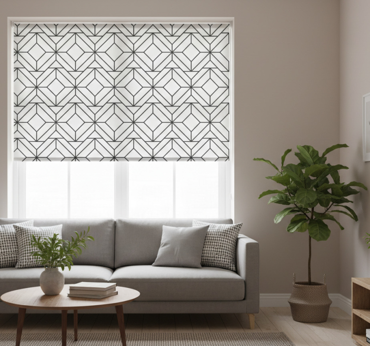 The Modern blind black and white geometric design modern blind is more than just a window covering; it is an artistic statement that transforms your interior decor. This distinctive roller blind enhances the ambiance of any room, making it a perfect choice for those looking to create a modern and chic environment. The eye-catching geometric patterns and striking black and white contrast stimulate creativity and bring a sense of harmony to your home. Embrace the opportunity to express your personal style while enjoying the practical benefits of light control and privacy!