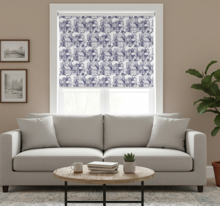 Reference: E7725Introducing the Modern blind city vintage design, a beautiful fusion of contemporary and retro aesthetics! This stunning roller blind features a visually striking pattern that encapsulates the charm of city life while providing a vintage twist. With easy assembly in just 2 clicks, effortless cleaning, and disassembly for quick maintenance, this roller blind is not only functional but also a stylish addition to your home. It effectively protects your room from direct sunlight, ensures privacy when lowered, and helps regulate your room's temperature, making it a must-have for any modern living space!
