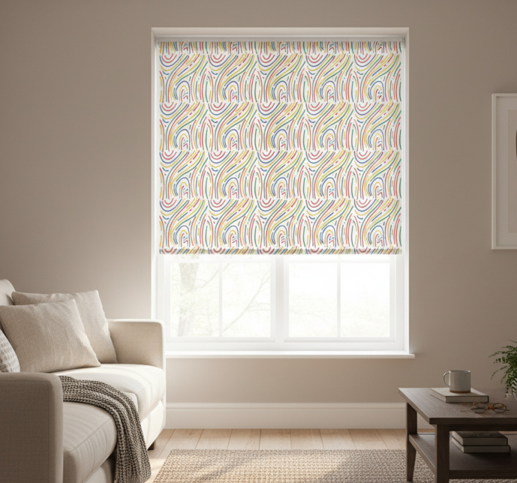 The Modern blind colorful lines on white background modern blind is the perfect addition to elevate your home decor! It adds a splash of color while harmonizing with modern interiors, making your space feel more inviting and lively. This roller blind not only enhances the visual appeal of your rooms but also provides practical benefits like blocking direct sunlight and ensuring privacy when lowered. Embrace the joy of decorating with this stylish and versatile blind!