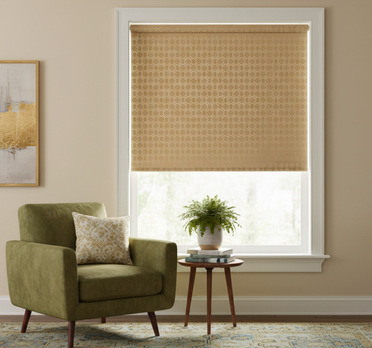 Reference: E7693Introducing our Modern blind eclectic art deco gold columns, a stunning blend of contemporary design and classic elegance! This unique roller blind features eye-catching gold columns that embody an eclectic art deco style, offering a luxurious touch to any room. With easy assembly in just 2 clicks, effortless cleaning, and quick disassembly, you can maintain your window space with ease. Our roller blind not only protects your space from direct sunlight but also provides privacy and helps regulate room temperature, making it a practical yet stylish addition to your home.