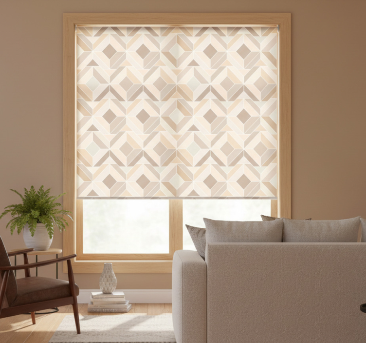 Reference: E7653Transform your living space with our Modern blind in beige striped pattern. This stunning design features a chic beige striped pattern that effortlessly enhances any décor. With easy assembly in just two clicks, this roller blind is not only user-friendly but also easy to clean and disassemble, ensuring that your windows and surroundings remain spotless. Enjoy the perfect blend of style and functionality as this blind protects your room from direct sunlight, provides privacy when lowered, and allows you to regulate room temperature effectively!