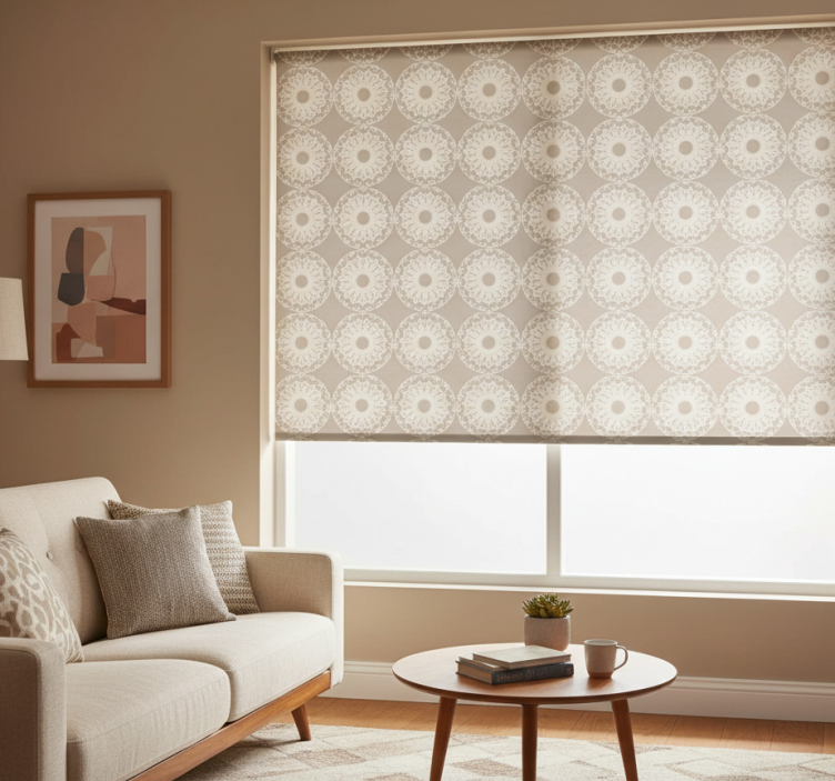 Transform your living area with the Modern blind in eclectic beige circle design modern blind. This roller blind serves as a stylish statement piece that elevates your home décor while providing functionality. With its unique design, it seamlessly complements various interior styles, creating a warm and inviting atmosphere. The perfect blend of form and function, this blind enhances your space while offering privacy and light control!