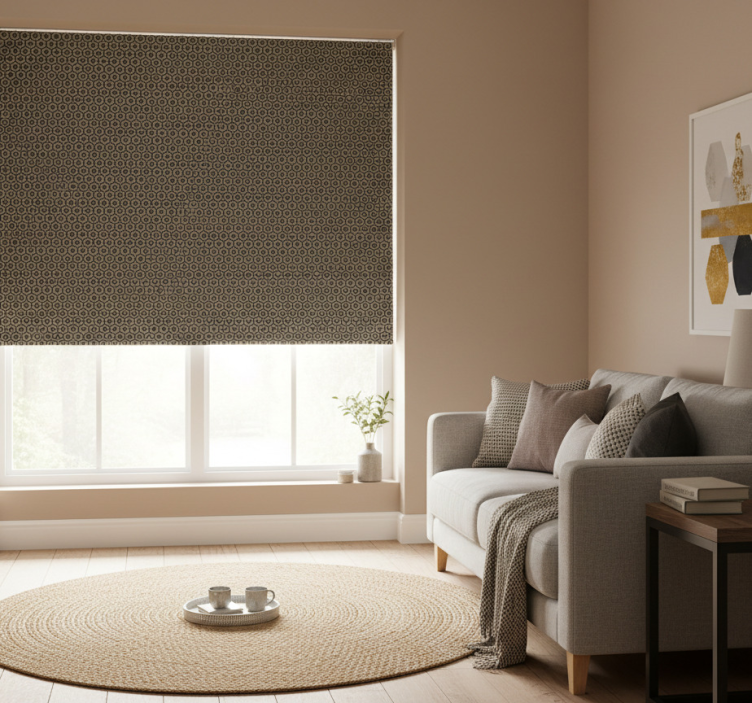 Transform your space with the Modern blind in gold and gray hexagon pattern modern blind. This exquisite roller blind not only protects your room from direct sunlight but also elevates your interior design, creating a harmonious balance of style and functionality. Imagine the warmth of the gold combined with the coolness of gray, bringing a touch of elegance to your home! Perfect for enhancing privacy while allowing natural light to filter through, this modern blind is an inspirational choice for any decor enthusiast.