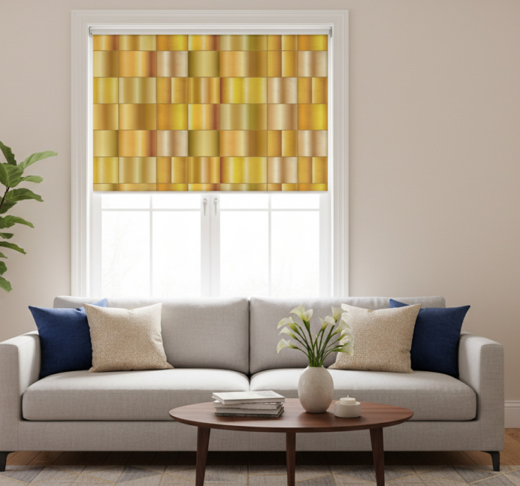 Transform your living area with the Modern blind in golden yellow blocks modern blind! This eye-catching design enhances your interior while providing functional benefits. Its vibrant colors and modern pattern add a touch of sophistication, making it a perfect choice for any contemporary setting. Imagine the warmth and cheer it brings to your home, creating a welcoming atmosphere for family and friends. This roller blind is not just a functional item; it's a statement piece that elevates your decor!