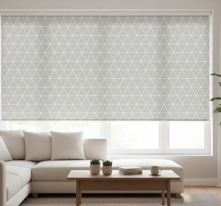 Reference: E7676The Modern blind minimalist light grey geo pattern features a stunning geometric design that effortlessly enhances any room's aesthetic. The light grey tones create a calming ambiance, while the minimalist approach ensures that it complements various interior styles. This roller blind is not just visually appealing but also practical, offering easy assembly and disassembly in just two clicks, easy cleaning, and the ability to regulate room temperature while providing privacy.