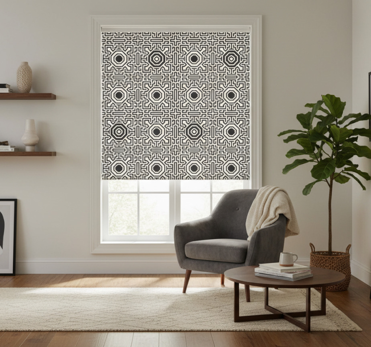 Installing the Modern blind octagon and lines design modern blind is a breeze! With easy assembly in just two clicks, you can have your new roller blind up in no time. Enjoy the simplicity of disassembly too, making cleaning your windows and surrounding areas quick and effortless!