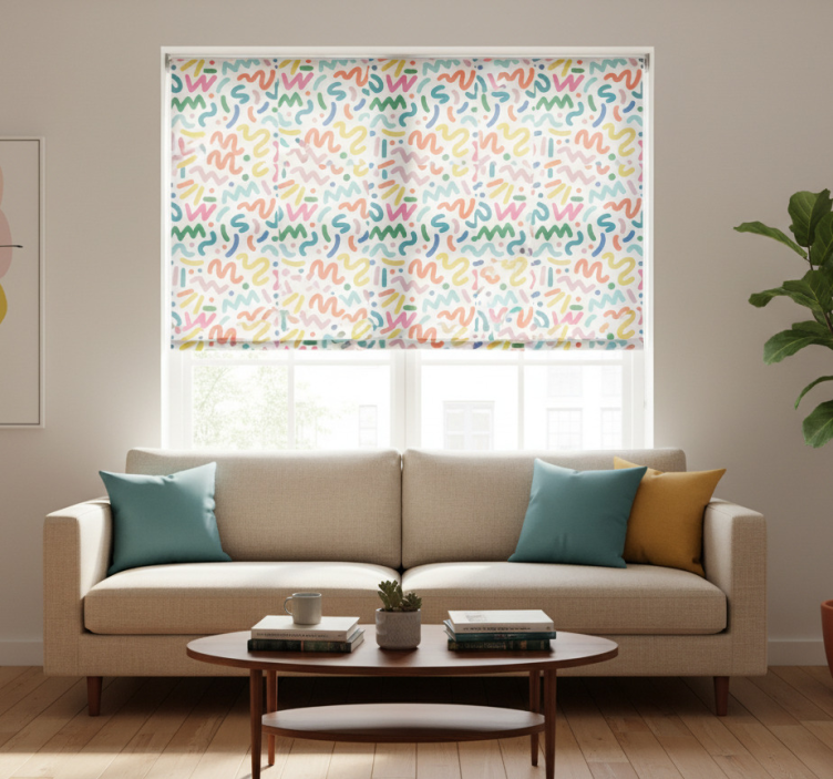 The Modern blind with abstract colored shapes modern blind is an inspiring choice for anyone looking to transform their interior. Its eye-catching design makes it a focal point in any room, bringing life and energy to your space. By incorporating this roller blind, you not only beautify your surroundings but also create a warm and inviting atmosphere that reflects your personal style!