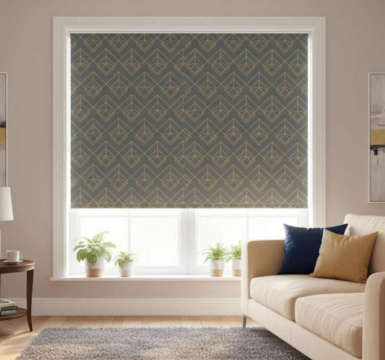 Modern blind with diagonal gold lines on dark grey
