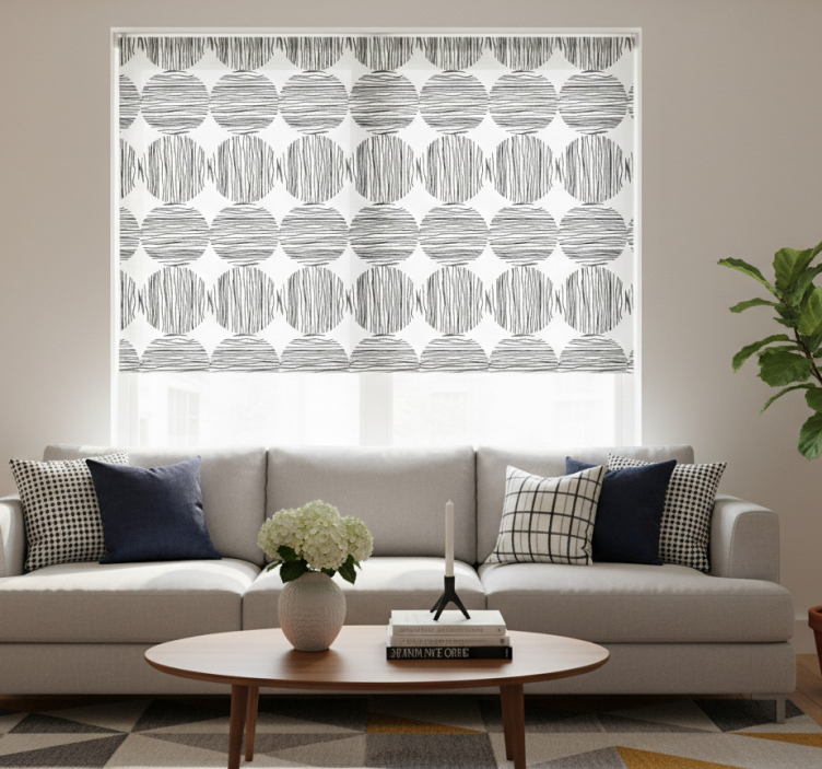 The Modern blind with striped circle design modern blind is not just a functional item; it is a statement piece that elevates your home decor. Imagine how this chic design can transform your living space, creating a warm and inviting atmosphere. Its unique pattern brings a modern flair, making it an ideal choice for those looking to enhance their interiors. Adding this roller blind to your decor is an easy way to express your personal style!