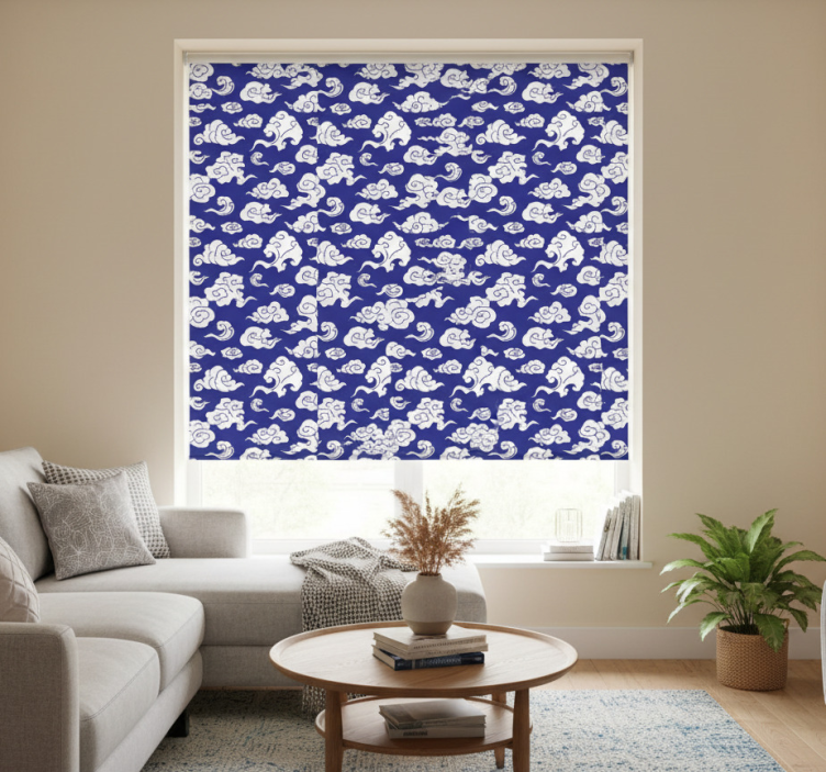Modern blind with white cloud silhouettes on blue