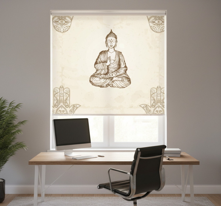 The Office blind buddha hamsa hand symbol Office blind is more than just a decorative item; it is a source of inspiration and positivity! Incorporating this beautiful piece into your workspace can uplift your mood and create a serene environment. It reflects your personality while providing an inviting atmosphere for both clients and colleagues. Transform your office into a sanctuary of creativity and tranquility!
