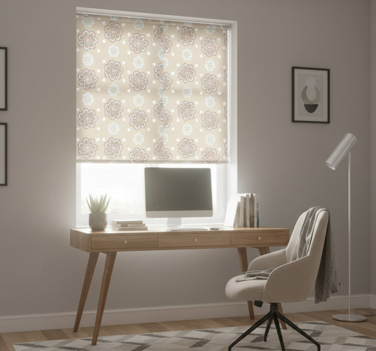 The Office blind elegant granny chic design Office blind is the perfect addition to elevate your home decor. This roller blind not only beautifies your space but also serves practical purposes. Its charming aesthetic complements various styles, making it an inspirational choice for those looking to transform their interiors. Let your windows tell a story of elegance and warmth with this unique blind!
