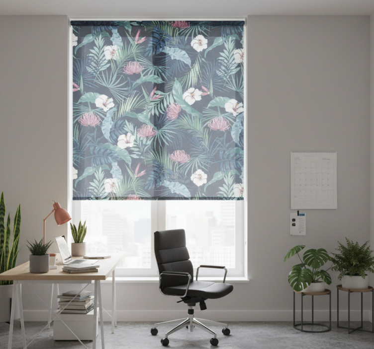 The Office blind exotic plants on leaves Office blind is not just a functional window covering; it's a statement piece! Imagine the boost to your creativity and mood as you work surrounded by lush greenery. This unique decor element enhances your workspace, providing both style and comfort. Its striking design is sure to impress visitors and create a welcoming atmosphere, making it an ideal choice for any professional setting!