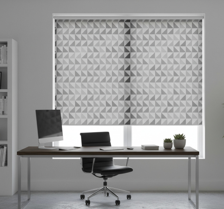 Reference: E7362Transform your space with our Office blind geometric triangles design, a stunning blend of modern aesthetics and functionality. This eye-catching design features an intricate pattern of geometric triangles that adds a touch of sophistication to any office environment. With easy assembly and disassembly in just two clicks, maintaining cleanliness around your windows is a breeze. The blind not only protects your room from direct sunlight but also enhances privacy when lowered, allowing you to regulate room temperature effortlessly while ensuring security. Plus, with 100% customizable measurements and three different textures to choose from, you can select the perfect fit for your light and privacy needs!