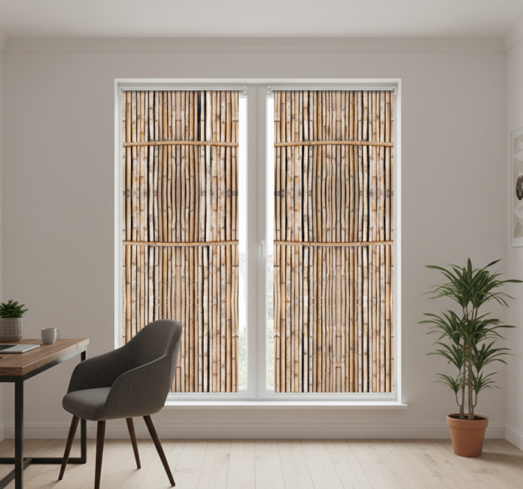 Reference: E7291Transform your space with our Office blind handcrafted imitation bamboo canes, designed to evoke the serene beauty of nature! This stunning blind features a unique graphical representation of bamboo canes, offering a chic and sophisticated touch to your home or office. The intricate detailing blends seamlessly with your decor, while providing essential benefits such as light control, privacy, and an inviting atmosphere.
