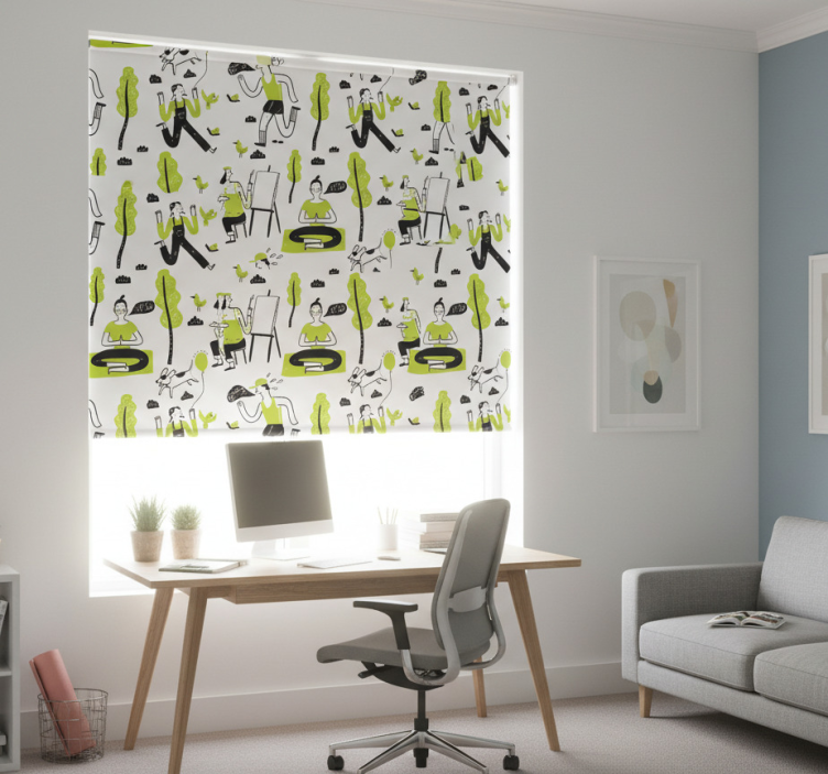 The Office blind healthy lifestyle doodle set Office blind transforms any dull office space into a lively sanctuary! By incorporating this beautifully designed blind into your decor, you not only enhance the visual appeal but also create an environment that promotes positivity and productivity. Imagine working in a space that reflects your vibrant personality while providing essential privacy and light control. It's more than just a blind; it's a statement piece that inspires creativity!