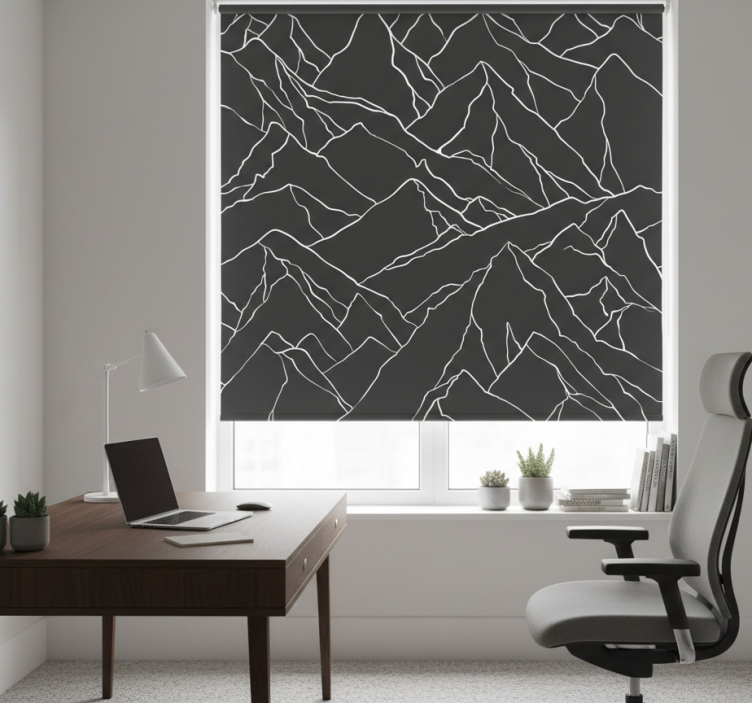 Reference: E7391Introducing the Office blind mountain outline, a stunning addition to your workspace! This beautifully designed roller blind features a captivating mountain outline graphic that adds a touch of nature-inspired elegance to any office setting. With its easy assembly in just two clicks, effortless cleaning, and the ability to protect your space from direct sunlight, this office blind is not only visually appealing but also highly functional. It provides privacy when lowered, helping you create a serene environment for work or relaxation. Additionally, it allows you to regulate the room temperature, ensuring comfort throughout the day.