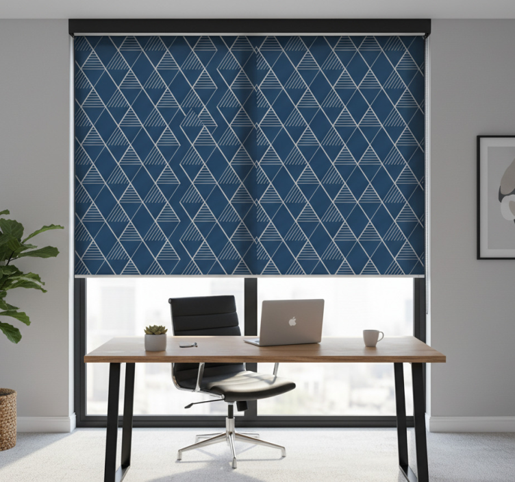 Reference: E7282The Office blind platinum geometric metallic features a stunning design that combines contemporary geometric patterns with a sleek metallic finish. This unique product is crafted to enhance your office space, offering easy assembly in just two clicks, effortless cleaning, and disassembly for quick window maintenance. It not only protects your room from direct sunlight but also provides privacy when lowered, ensuring a comfortable ambiance. With the ability to regulate room temperature and enhance your home security, this roller blind is an ideal choice for modern living. Plus, it comes in 100% customisable measurements and three textures for different light and privacy needs!