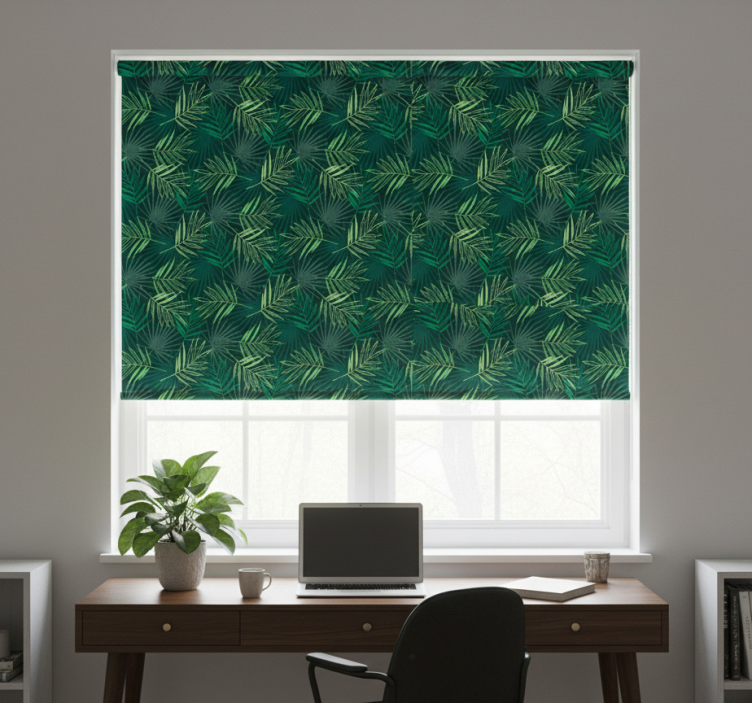 The Office blind tropical blend design Office blind serves as more than just a window covering; it transforms your office into a sanctuary of creativity and inspiration. Its lively design not only uplifts your mood but also enhances the overall aesthetics of your workspace, making it an inviting place for collaboration and productivity. Let your office reflect your personality with this beautiful roller blind that combines style and practicality!