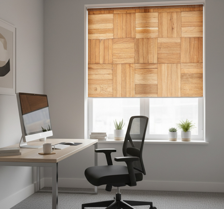 Reference: E7394The Office blind protected by the wooden wave is a stunning blend of style and function, showcasing a contemporary design that harmonizes beautifully with any workspace. Its elegant wooden wave pattern adds a touch of sophistication, while the versatile colors allow for seamless integration into your office decor. This roller blind is not only visually appealing but also boasts features such as easy assembly in just two clicks, effortless cleaning, and disassembly for quick maintenance. It effectively protects your room from direct sunlight, provides privacy when lowered, and helps regulate room temperature, ensuring a comfortable atmosphere at all times!