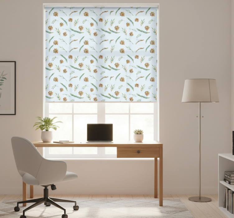 Transform your office space into a serene oasis with the Office blind watercolor floral blue Office blind. This exquisite roller blind serves as a perfect decorative element, bringing a touch of nature indoors. The enchanting floral patterns inspire creativity and calmness, making it an ideal choice for those who seek both beauty and practicality. Imagine working under the gentle embrace of this stunning design, which not only adds style but also enhances the overall ambiance of your space!