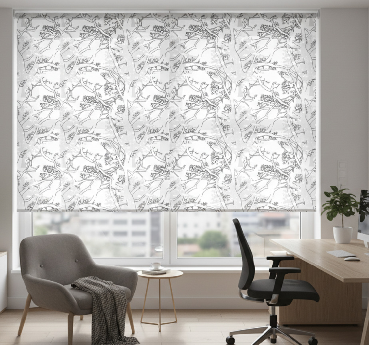 The Office blind with dark tree branches design Office blind is not only a practical solution for light control but also a beautiful element of decoration. Imagine the enchanting atmosphere it brings to your workspace, where nature meets design! This roller blind enhances the aesthetic appeal of your office while ensuring privacy and comfort, making it an essential addition to your interior design.